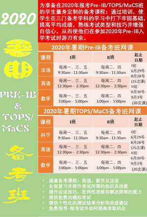 Q2学院2020年暑期网课 欢迎家长们抓紧时间报名注册,报多门课程、多人一起报名均有优惠;介绍朋友也有优惠! *具体优惠办法及上课时间请与学院商定。 一、Q2学院2020年暑期Pre-IB|TOPS|MaCS等备考班网课 二、Q2学院2020年暑期高中各科课程网课 三、Q2学院2020年3-7年级暑期网课课 四、Q2学院2020年暑期ESL强化班网课 五、Q2学院2020年暑期IB、雅思、SSAT、SAT等备考班网课 六、Q2学院2020年暑期大学申请规划与包装网课 七、Q2学院2020年暑期数理化竞赛类网课 八、Q2学院2020年暑期AP课程网课 九、Q2学院2020年暑期人际交流和演讲培训网课 十、Q2学院2020年暑期程序设计班网课